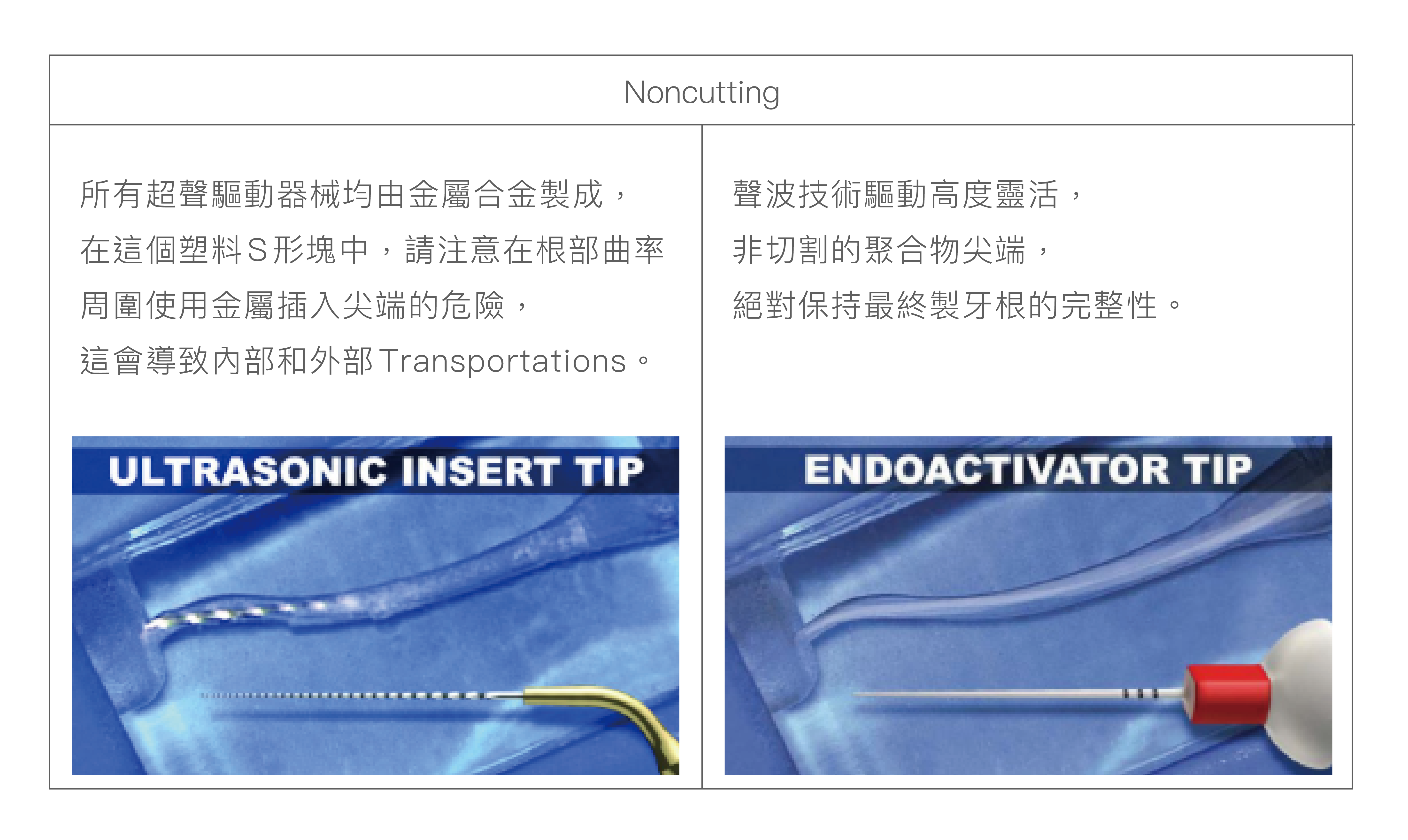 建議使用時選擇合適的 Tip 並與根尖留 2-3 mm 安全距離上下移動 25-35 秒以達到更好的效果