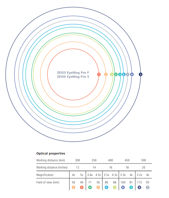 ◆ 建議醫師以工作距離做首選,再選接近自己需要的放大倍率